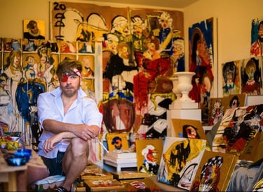 Active as an artist since adolescence, his work reveals an anecdotal and autobiographical inclination, frequently engaging with everyday and historical narratives in which he often places himself as a central figure. His artistic development in Germany has been characterized by a deep engagement with the visual traditions of the German royal houses—particularly those of Bavaria, Saxony, and Prussia—providing both structure and depth to his evolving creative practice.