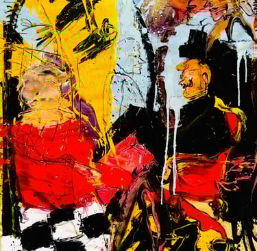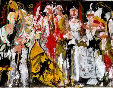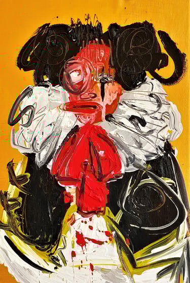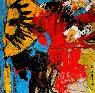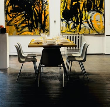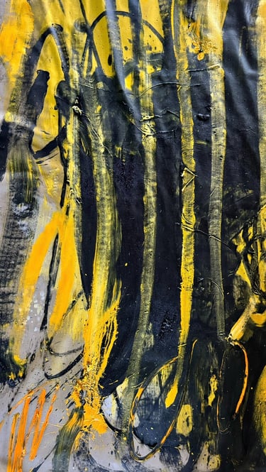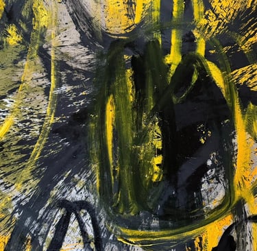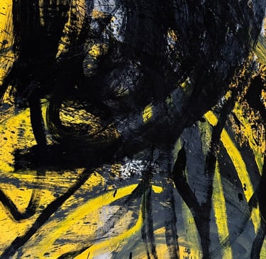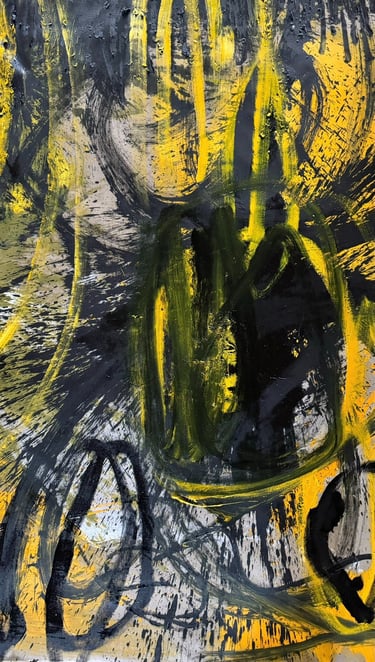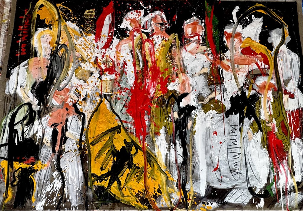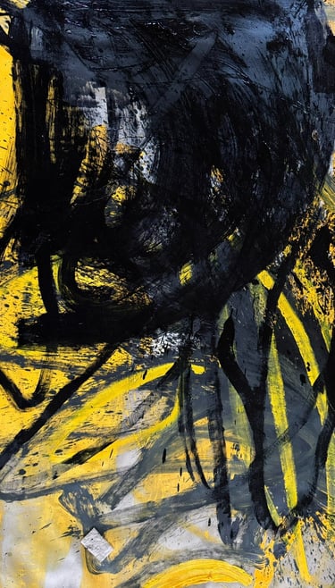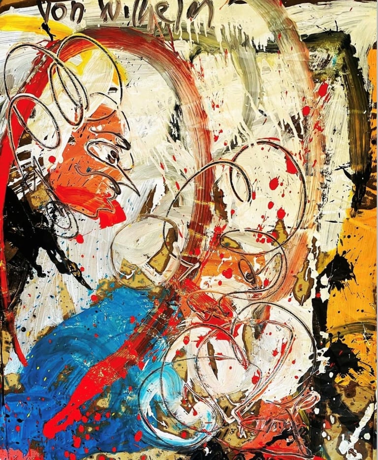 Yet, traces of figuration persist within von Wilhelm’s abstract compositions: the faint outline of a chair, the geometry of a chessboard, the spectral silhouettes of princes and emperors. These elements emerge as residual images, fragments of memory that resist disappearance. In these works, abstraction becomes an act of decomposition—where the thematic substance of his practice is dismantled and reconfigured in darkness, through the very act of painting blindly.