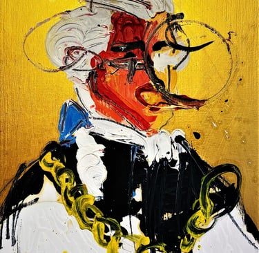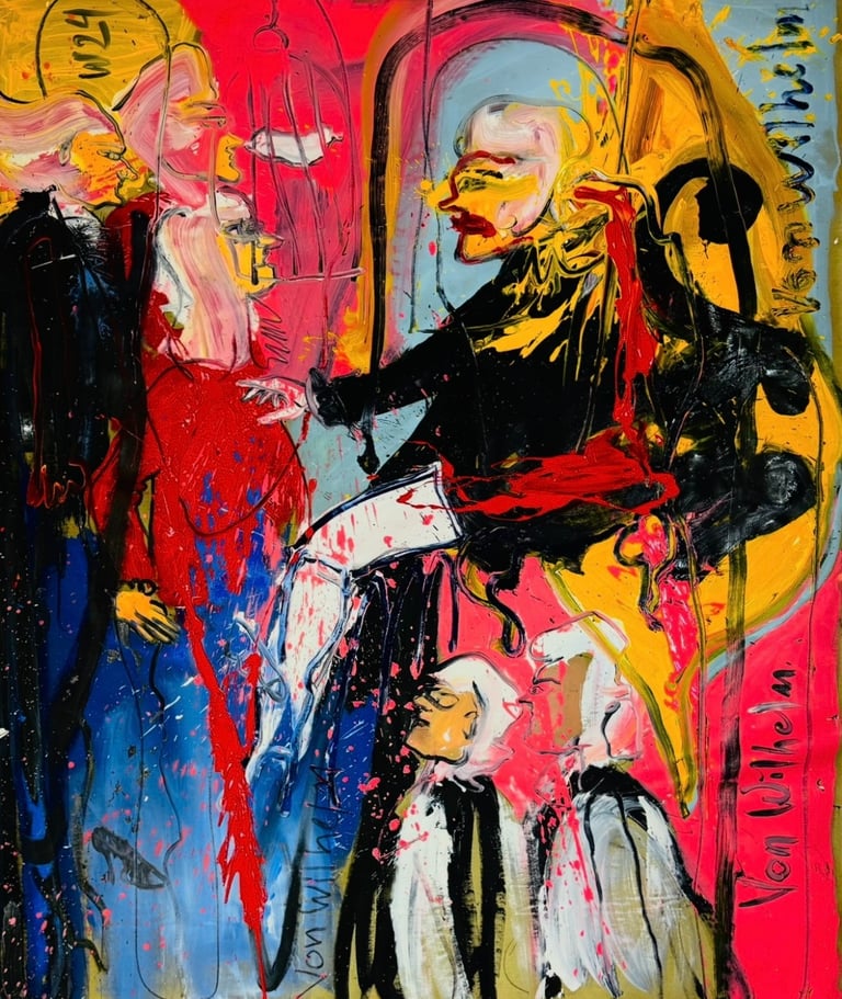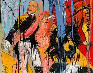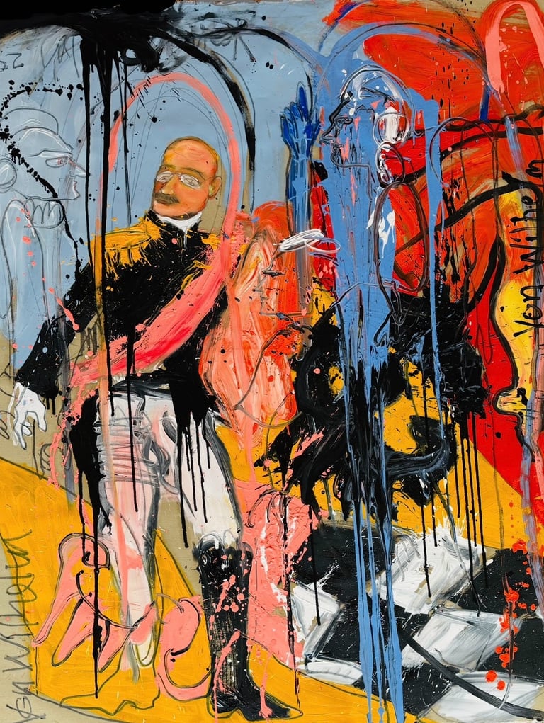 The Prussian, Bavarian, and Saxon court portraits presented by Esteban Velazquez von Wilhelm represent a completely new approach, breaking with the structure of traditional portraiture while maintaining its stylistic codes, bringing the etiquette, rigor, and formality of the past into the contemporary context of a new paradigm sustained by the new social and communication codes of the present.