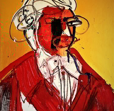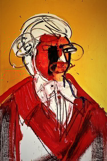 The free, abrupt, pasty brushstroke. The oil paint that overflows and overlaps previously demarcated lines. The destroyed or absent eye, the wigs, and the orders not only evoke the characters von Wilhelm portrays but, at the same time, he portrays himself again and again in each one. His painting is an apologia for identity, his own and that of others.